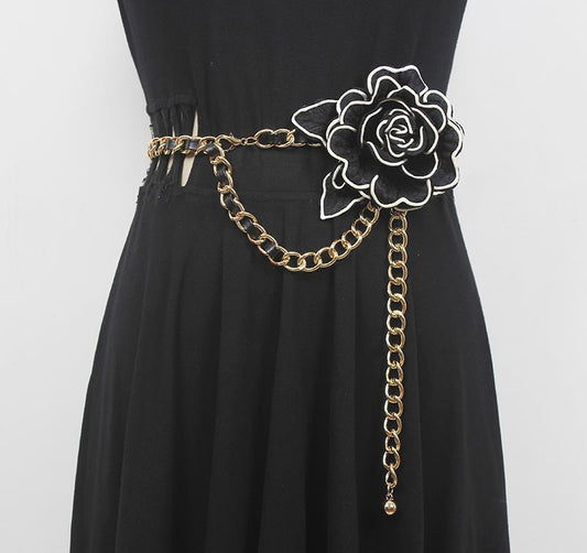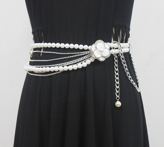 Vintage Fashion Pearl Flower Belt Dress Versatile Decorative Accessories Chain Metal Waist Chain