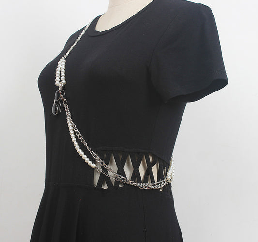 Vintage Fashion Glasses Accessories Design Pearl Titanium Steel Belt Pants Chain Hip Hop Waist Chain Clothes Accessories