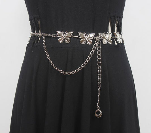 Vintage Fashion Punk Women Metal Butterfly Tassel Chain Waist Chain Belt