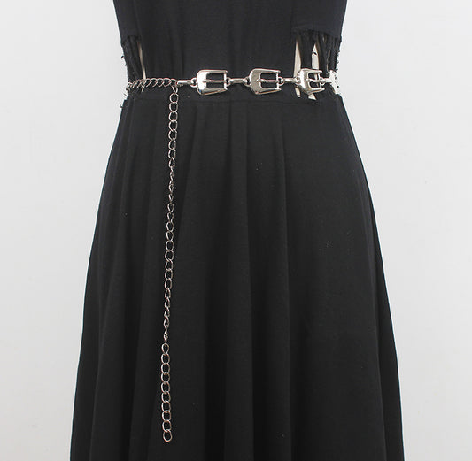 Versatile French Elegant Ins Women's Metal Belt Buckle Waist Chain Chain Belt Slimming Matching Suit Belt