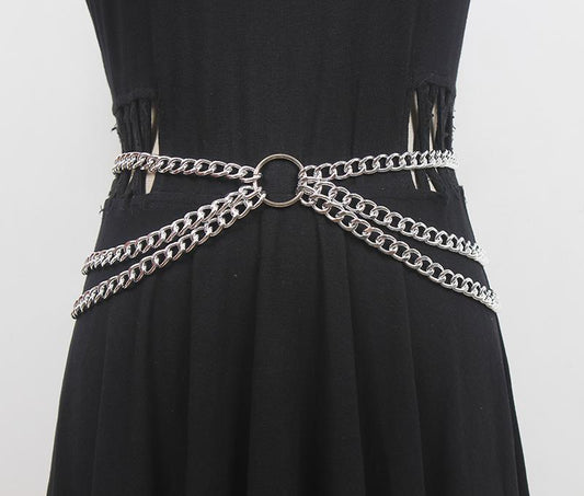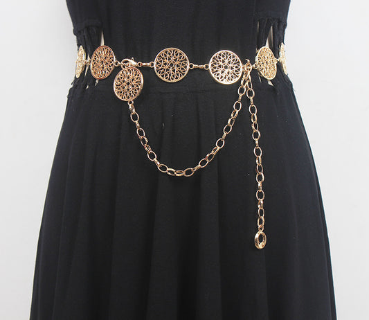 Vintage Fashion Women Metal Circle Waist Chain Decorative Chain Belt