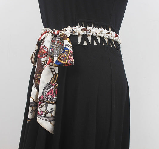 Vintage Fashion Silk Scarf Pearl Waist Chain Ladies Decorative Belt Waist Chain