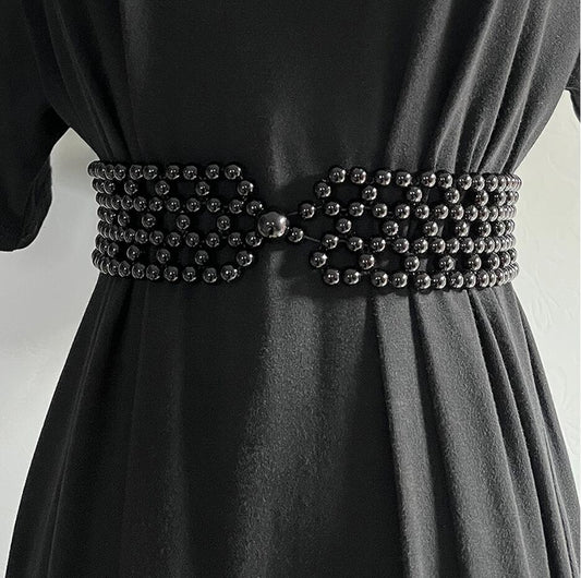 Vintage pearl waistband elastic wide belt decoration with skirt stretch waist chain accessories