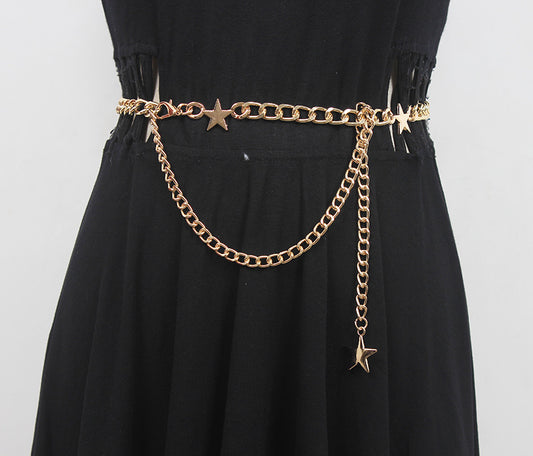 Vintage Fashion Dress with Waist Gold Metal Star Pentagram Waist Chain Belt